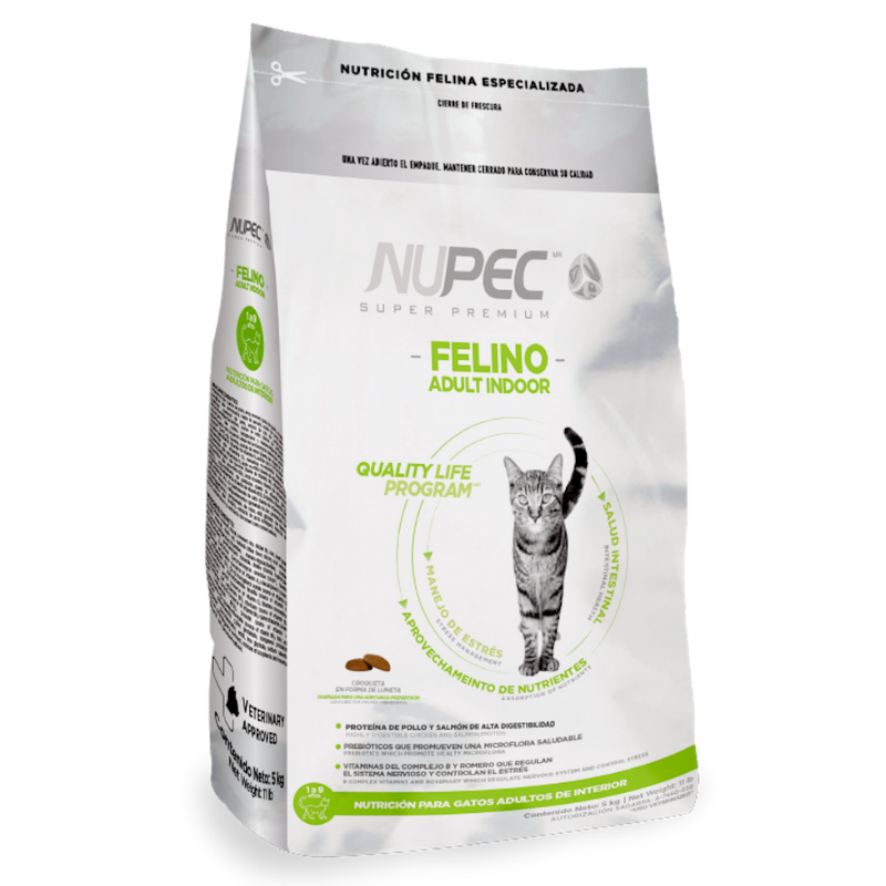 Nupec Indoor cat es un alimento que brinda una excelente nutrición a tu gato con los requerimientos nutrimentales que los gatos necesitan para desarrollarse sanos y fuertes.