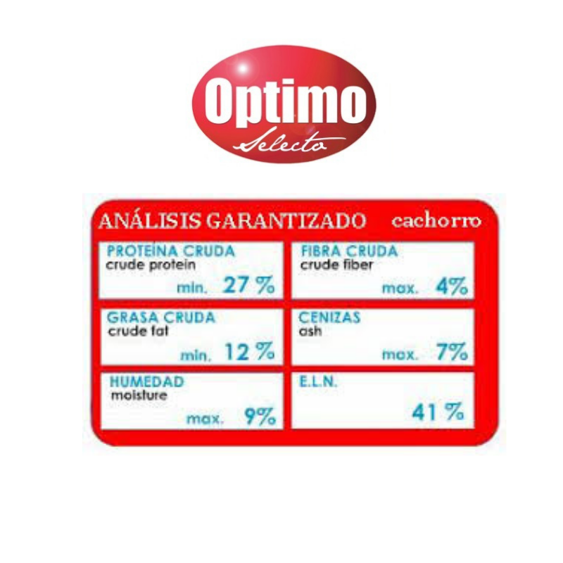 Cereales, harina de pescado, harina de carne de res, pasta de oleaginosas, suero de leche deshidratado bovino, concentrado de proteínas de origen vegetal, harina de subproductos de ave, sebo de res (preservadas con BHA y BHT), aminoacidos, minerales: fósforo, calcio, sodio, zinc, hierro, manganeso, cobre, iodo, selenio, cobalto, potasio, vitaminas: A, D, E, K y complejo B.